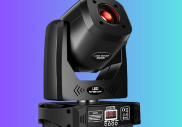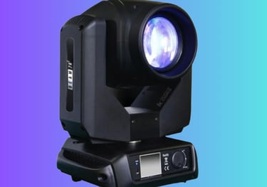 Cabeza móvil potente que genera haces de luz brillantes y de largo alcance. Ofrece efectos visuales con cambios de color, gobos y movimientos programables.