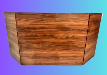 Cabina de DJ con acabado en madera natural, ideal para eventos con temática vintage o al aire libre.