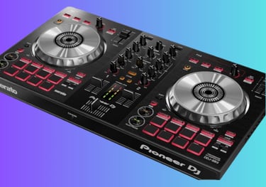 Controlador DJ básico y portátil, ideal para principiantes y eventos pequeños. Ofrece funciones esenciales para mezclar música con software de DJ.
