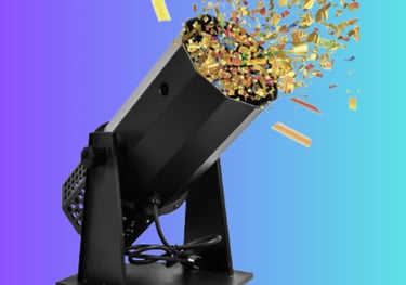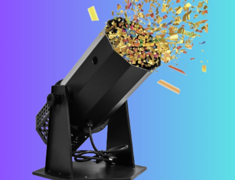 Equipo que lanza papelitos de colores al aire, creando un efecto de celebración espectacular. Ideal para el cierre de eventos, shows o momentos especiales.