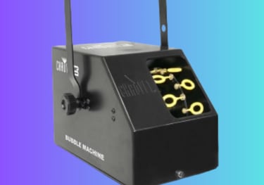 Produce un flujo constante de burbujas que llenan el ambiente de diversión y ligereza. Muy usada en bodas, fiestas infantiles y eventos sociales.