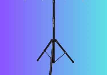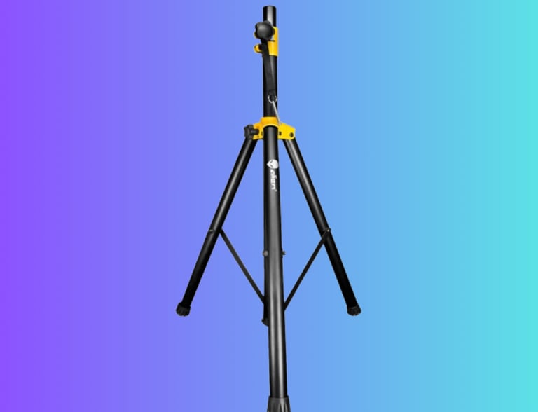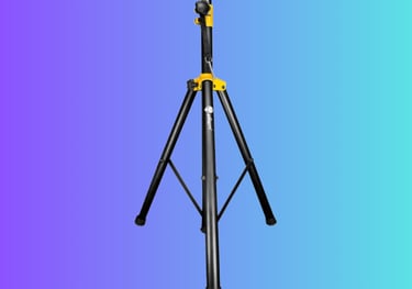 Soportes resistentes que elevan las bocinas para lograr mejor cobertura de sonido. Ligeros, portátiles y fáciles de ajustar en altura.