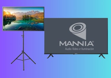Pantalla de alta definición con conectividad inteligente, ideal para presentaciones, eventos y proyecciones. Puede instalarse en un soporte fijo de pared o en un Rolling TV Stand para mayor movilidad y flexibilidad.
