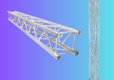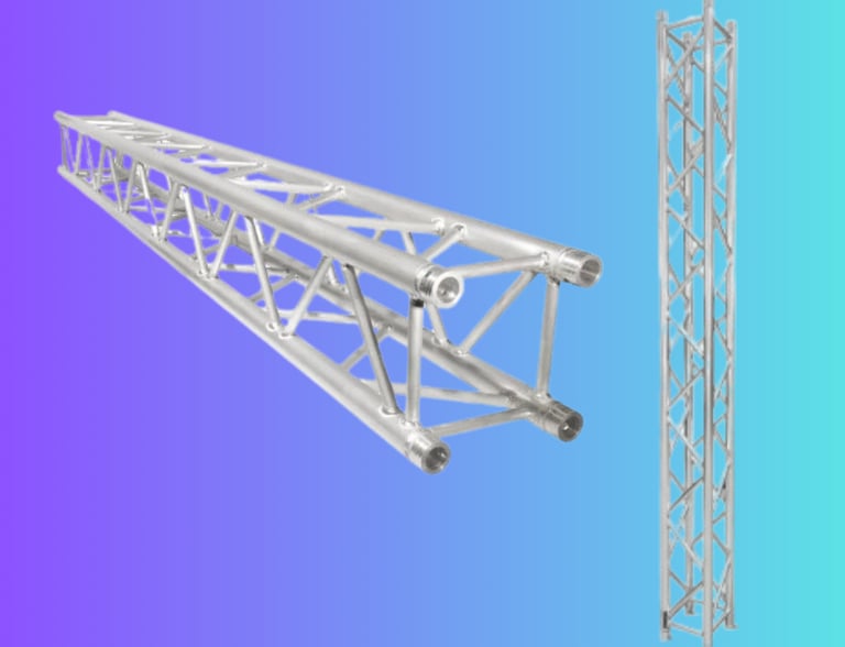 Estructuras metálicas que sirven como soporte para colgar luces, pantallas, bocinas u otros equipos. Son seguras, resistentes y se adaptan a diferentes montajes de escenario o decoración.