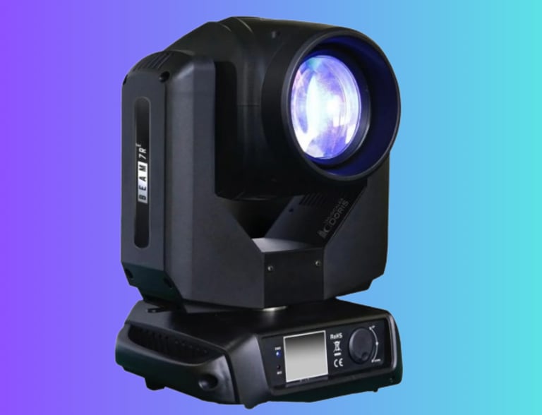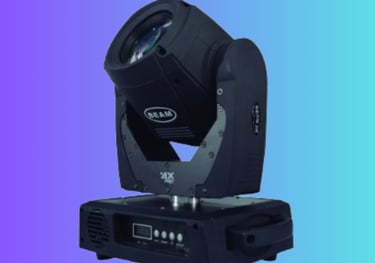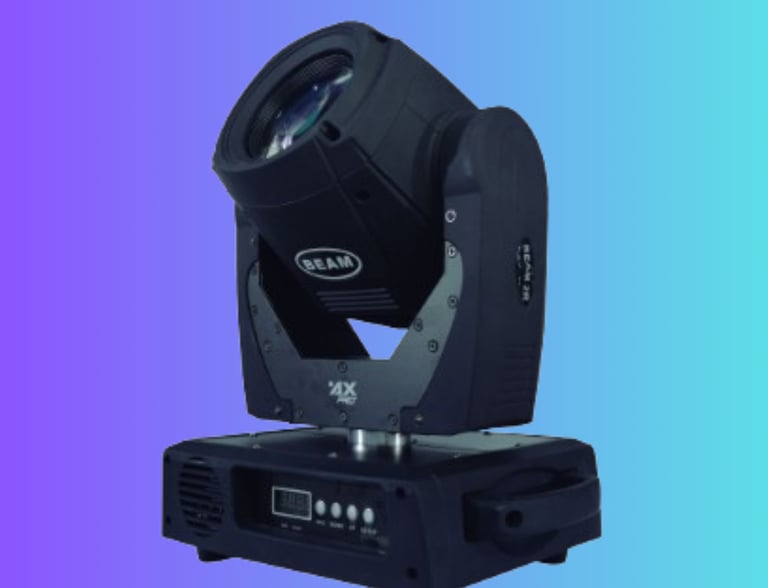 Cabeza móvil de alta velocidad que proyecta haces de luz definidos con movimientos rápidos y múltiples colores. Ideal para pistas de baile y espectáculos.