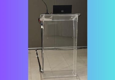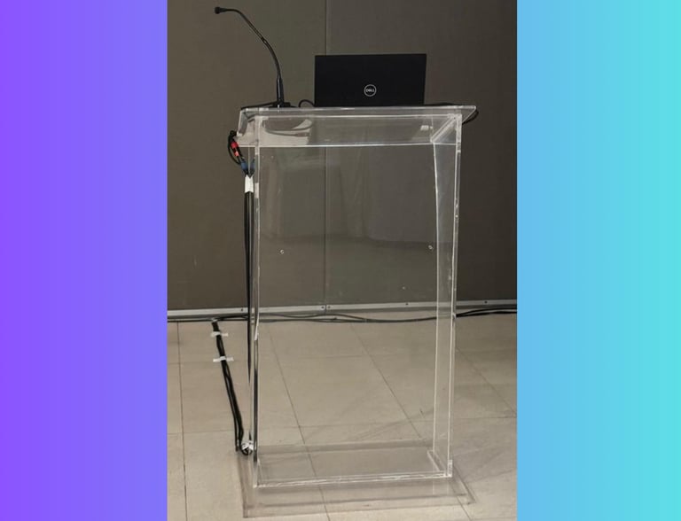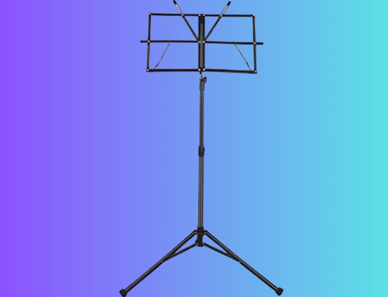 Soporte ligero y ajustable para colocar partituras, tablets o apuntes. Útil en presentaciones musicales, conferencias y eventos culturales.