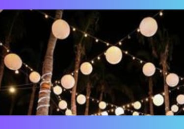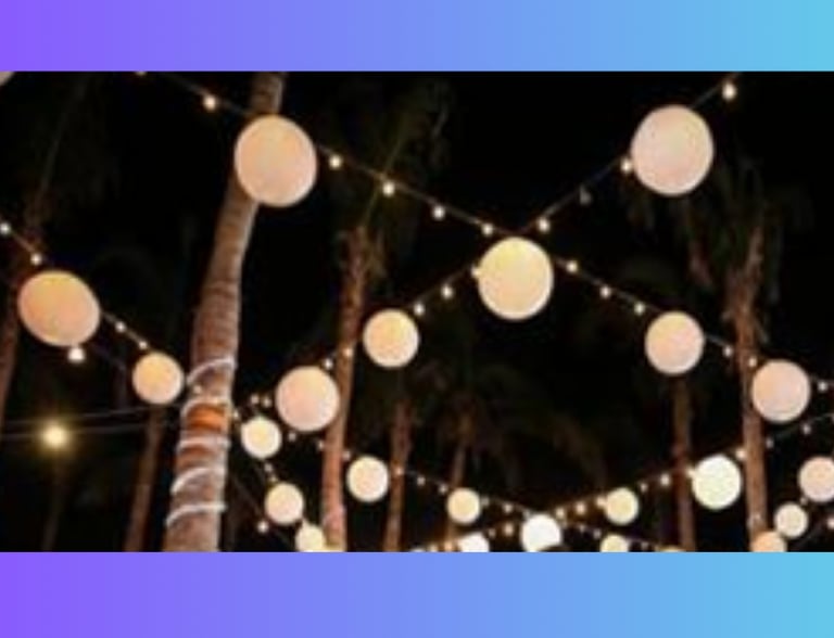 Faroles de papel en distintos tamaños y colores que se cuelgan junto a las string lights. Aportan un toque decorativo cálido y romántico.