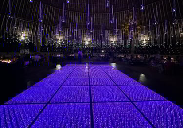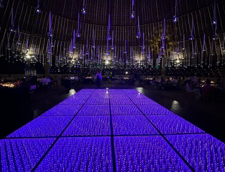 Pista LED con efecto pixelado que permite mostrar patrones y animaciones sincronizadas con la música. Genera un ambiente dinámico e interactivo en la pista de baile.