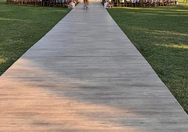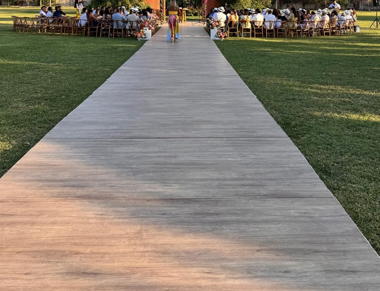 Plataformas de madera que se unen para crear caminos hacia la pista principal o áreas específicas. Sirven para dar un toque elegante en entradas y pasillos.