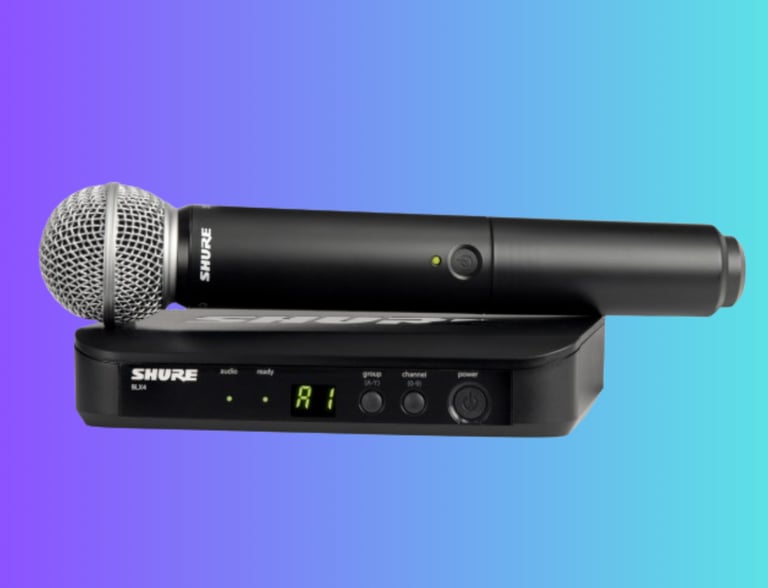 Sistema inalámbrico con micrófono de mano, diseñado para voz clara y profesional. Perfecto para cantantes, maestros de ceremonias y oradores.