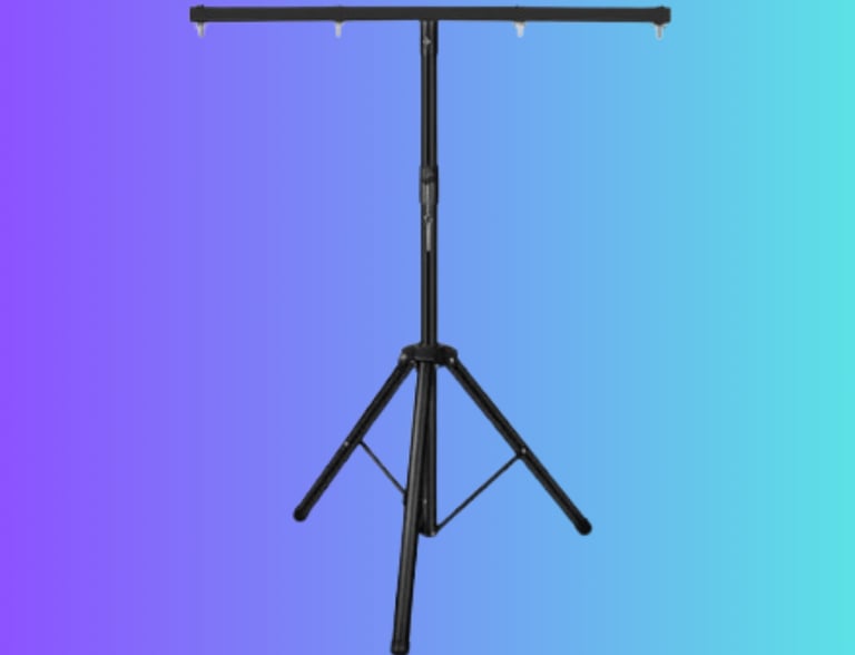 Soportes altos que permiten colgar varias luces. Incluyen un sistema de polea que facilita el montaje seguro a mayor altura.
