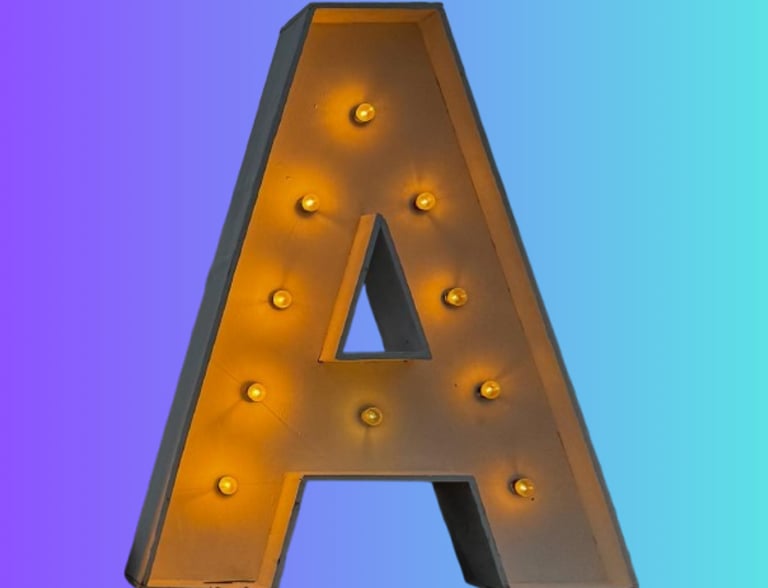 Letras gigantes iluminadas con luz cálida que crean un ambiente romántico y elegante. Son el complemento perfecto para personalizar bodas, aniversarios o eventos sociales.