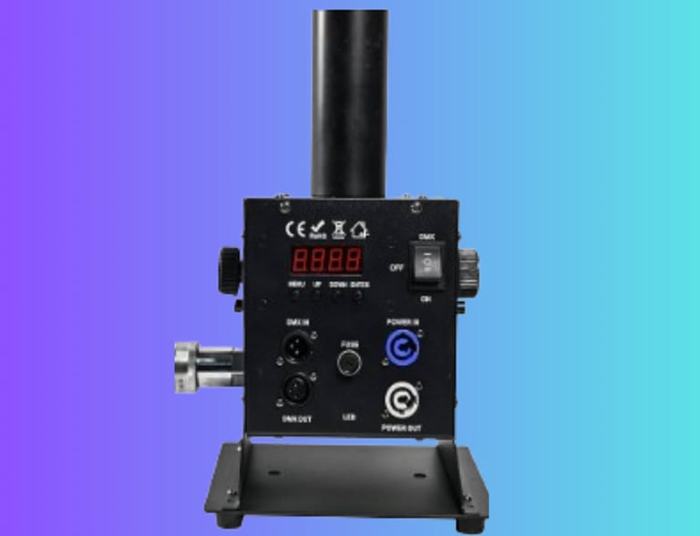 Equipo especial que lanza columnas de gas CO₂ creando un efecto espectacular en el escenario o la pista de baile. Da un impacto visual para shows y momentos de clímax en la música.