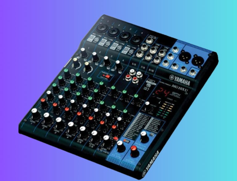 Consola de audio compacta de 10 canales. Permite mezclar micrófonos e instrumentos de forma sencilla, con efectos integrados para mejorar el sonido. Ideal para eventos pequeños y presentaciones.