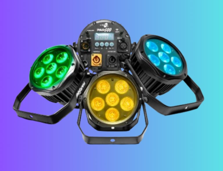 Luminaria LED potente que combina varios colores para lograr efectos de iluminación versátiles. Ideal para resaltar paredes, crear fondos de color o iluminar zonas específicas en eventos.